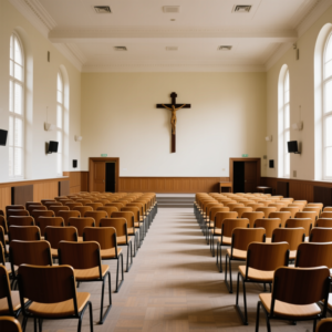– Dans un lycée privé, ou une communauté religieuse, la salle prêtée est toujours assurée.