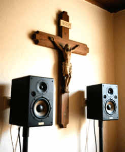 – Des icônes, une grande croix, des tableaux, des voilages, des calicots pourront parfaire l’ensemble.
